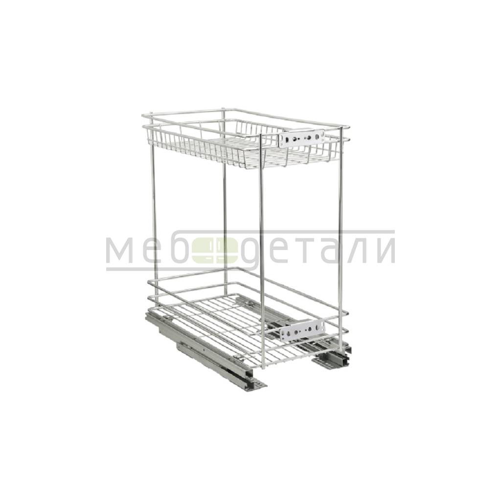 Бутылочница 2-уровневая 400мм (345х475х510мм) с доводчиком нижнее крепление, хром