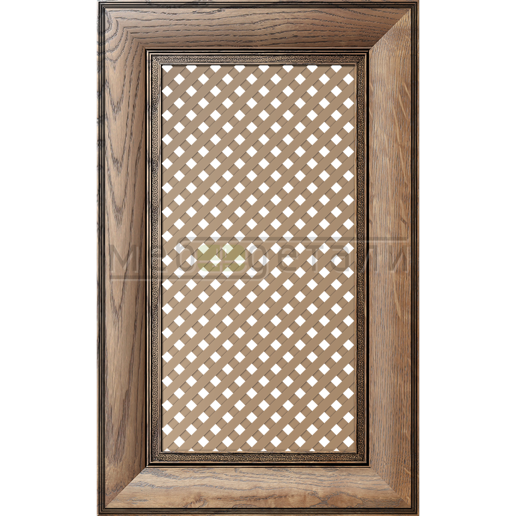 Фасады Решётка Массив России модель Ника Ночи, цвет Орех с чёрной патиной для распашных шкафов, кухонной и корпусной мебели.