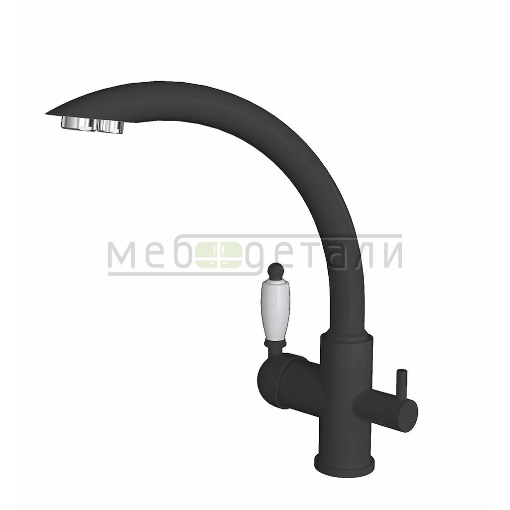 Смеситель кухонный с композитным покрытием, однорычажный с низким изливом.